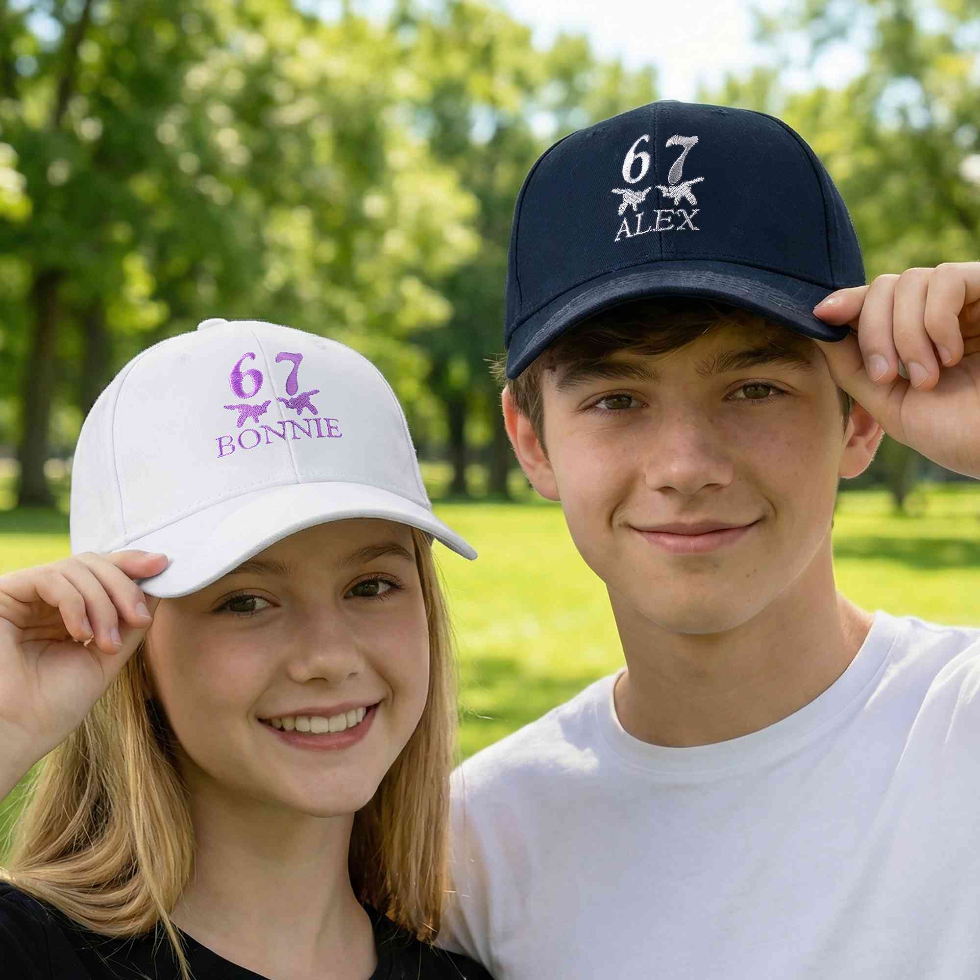 Personalized Name Embroidered Six Seven Design Baseball Cap, 100% Cotton Twill Adjustable 67 Hat, Birthday/Back to School Gift for Gen Z Tweens/Kids